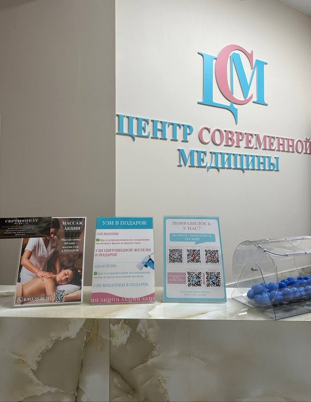 Центр Современной Медицины - это многопрофильное медицинское учреждение, предлагающее специально подобранный комплекс процедур и услуг для каждого клиента. Работа клиники организована с учетом комфортного пребывания посетителей. Техническое оснащение кабинетов помогает провести диагностические исследования организма пациента для составления плана лечения и профилактики. В клинике работают отделения общей терапии, гастроэнтерологии, неврологии, эндокринологии, дерматологии, венерологии, урологии, андрологии, гинекологии, акушерства. Наши работники имеют профильное медицинское образование и с пониманием отнесутся к каждой вашей просьбе. Доверяя свое лечение нам, вы можете быть уверены в результате.